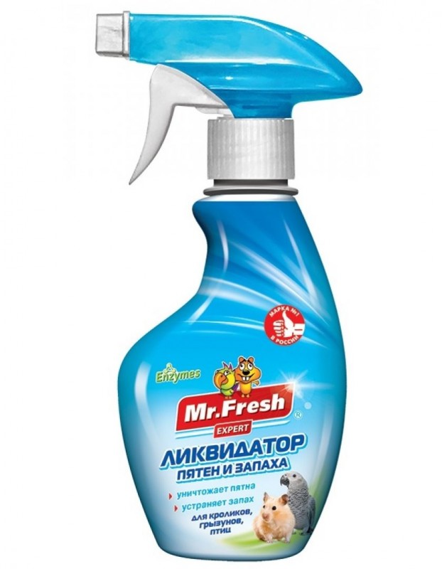 Ликвидатор пятен и запаха для кроликов, грызунов и птиц входят: • Энзимы - Растворяют загрязнения - Устраняют неприятные запахи • Нипацид и изопропиловый спирт - Защищают от бактериального и грибкового заражения В составе Ликвидатора отсутствуют ароматизаторы, чтобы не раздражать обоняние питомца. Используйте Mr.Fresh Expert Ликвидатор пятен и запаха для кроликов, грызунов и птиц: При мытье клетки .При замене наполнителя в клетке . Для очищения стойких загрязнений . Для пластиковых и металлических деталей Встряхните флакон и распылите на загрязнённую поверхность, до достаточного увлажнения. Подождите 5-10 минут. Круговыми движениями протрите испачканное место салфеткой или тряпкой. Не требует смывания
