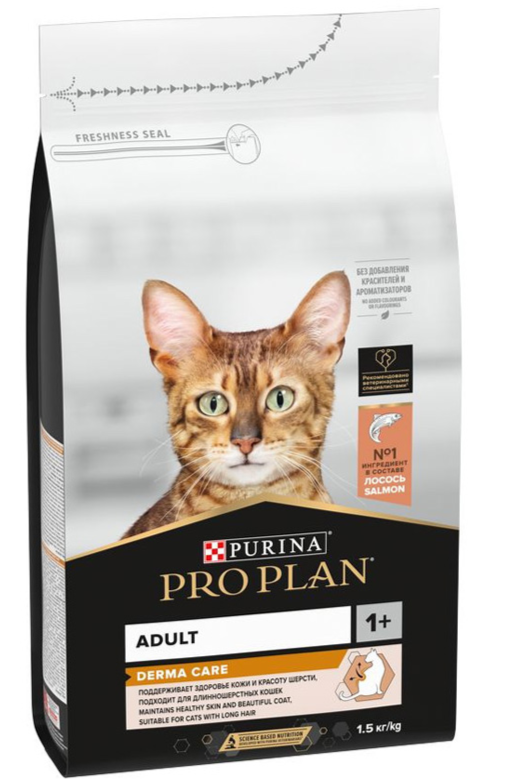 Pro Plan Derma Care сухой корм для взрослых кошек, для здоровья шерсти и кожи, лосось.