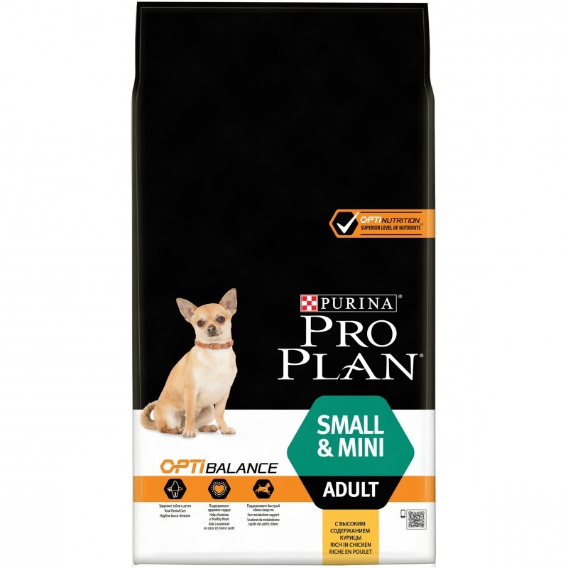 Корм сухой полнорационный для взрослых собак мелких и карликовых пород Purina® PRO PLAN® Small & Mini Adult с комплексом OPTIBALANCE®, с курицей и рисом.